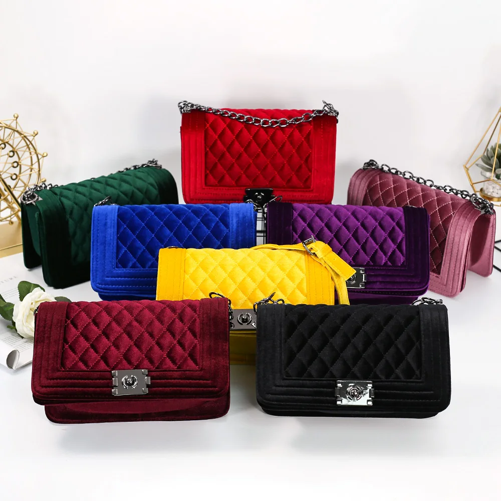 冬の新製品 8色ベルベットダイヤモンドチェーンバッグ クロスボディハンドバッグ レディースハンドバッグ レディース財布 ハンドバッグ